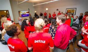 Aetna Director of Mindfulness Cheryl Jones speaking at the opening the organization’s first company-based mindfulness center.